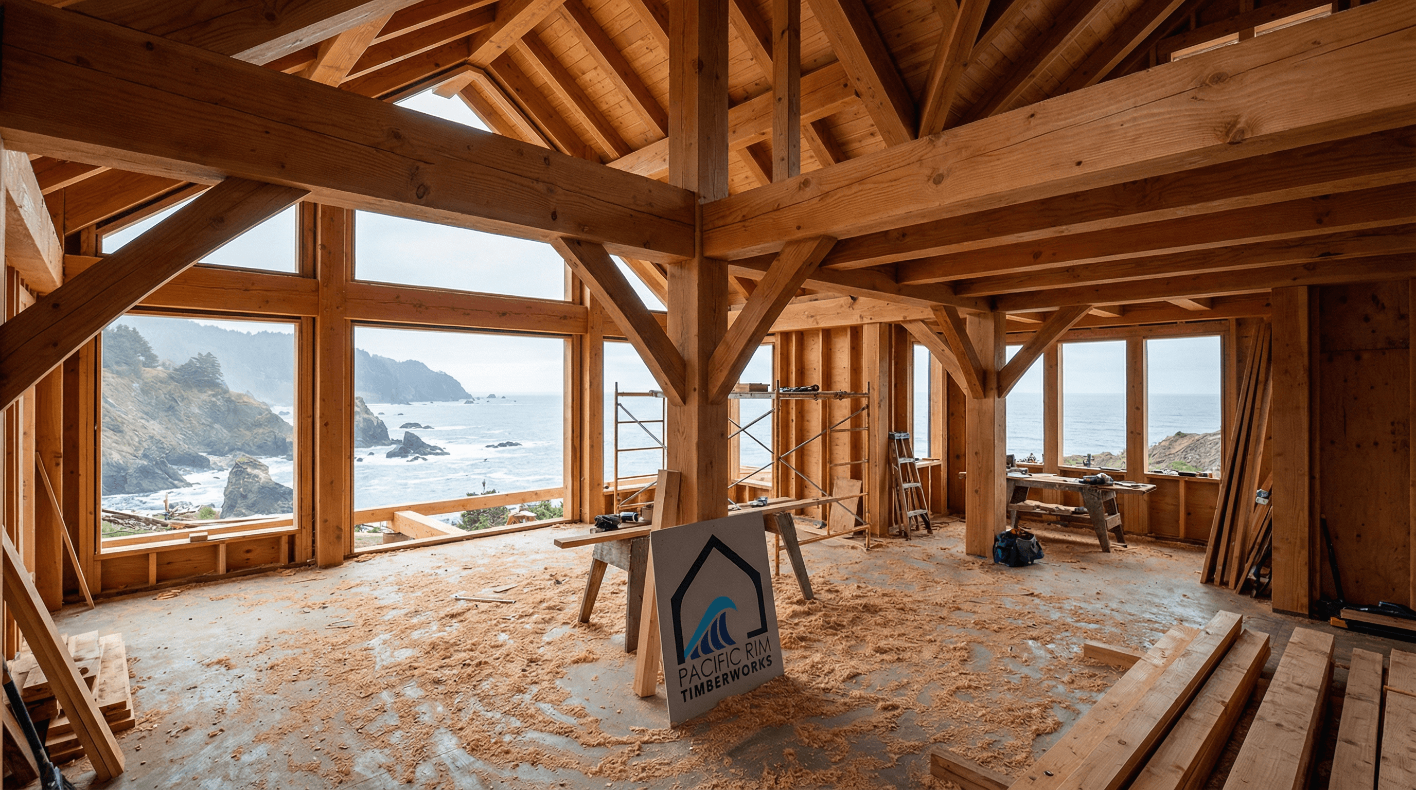 Pacific Rim Timberworks needed a logo and visual identity that reflected both the owner’s background in timberworking and his personal connection to the ocean.