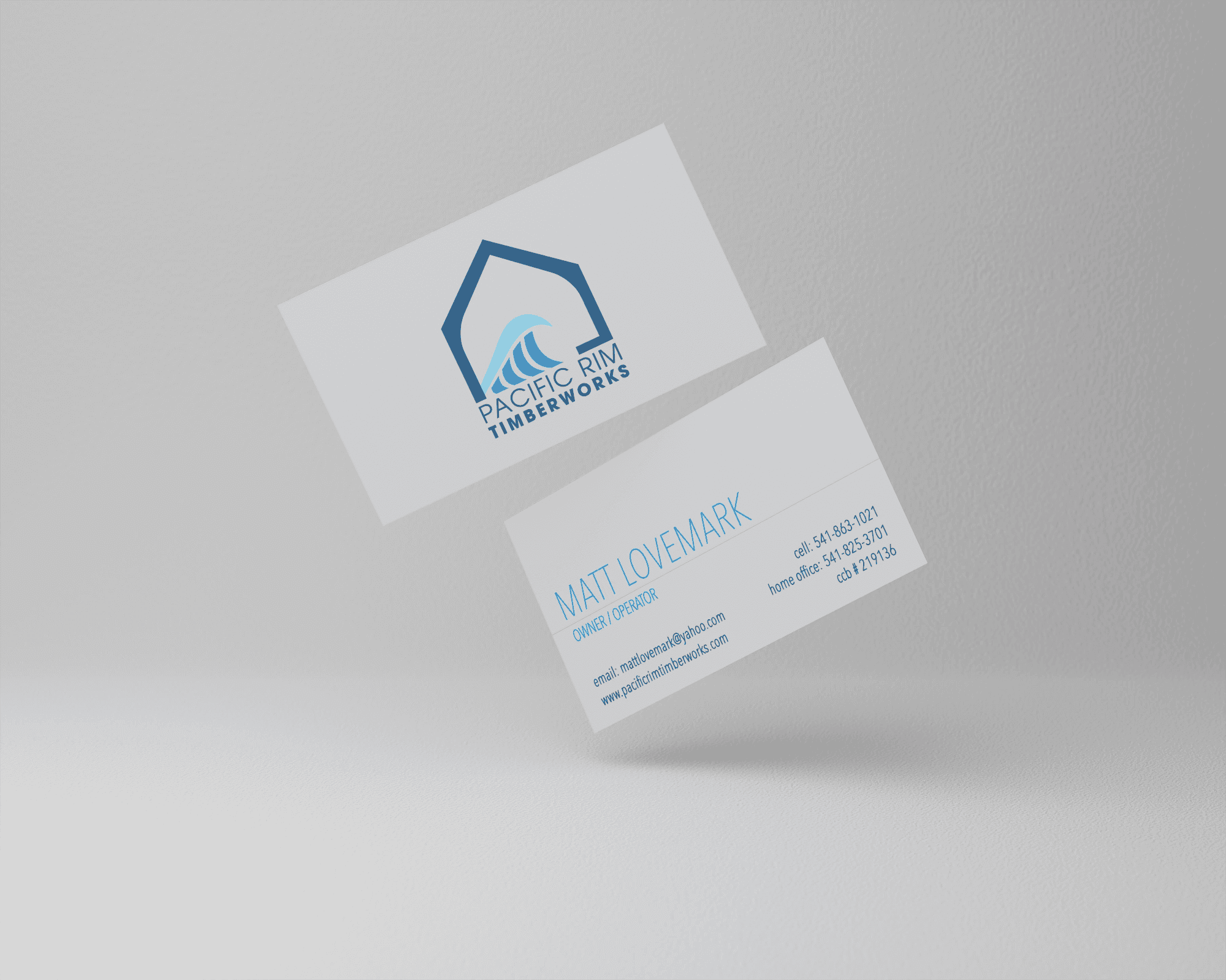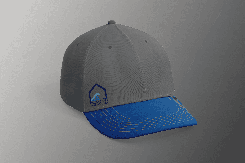 The final logo became the foundation for Pacific Rim Timberworks’ visual identity—expanding into business cards + branded apparel + providing a flexible system the owner could grow with over time.